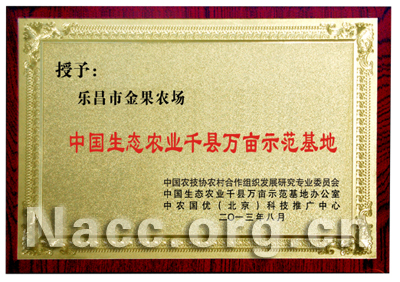 樂昌市金果農場中國生態農業千縣萬畝示范基地銅牌 2015-08-19 點擊:92616 評論:0