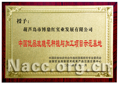 葫蘆島市博鼎紅實業發展有限公司 中國優品玫瑰花種植與加工項目示范基地銅牌 2015-08-19 點擊:161087 評論:0